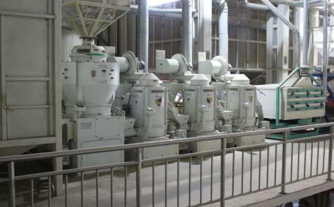 上海80噸大米加工成套設備一角